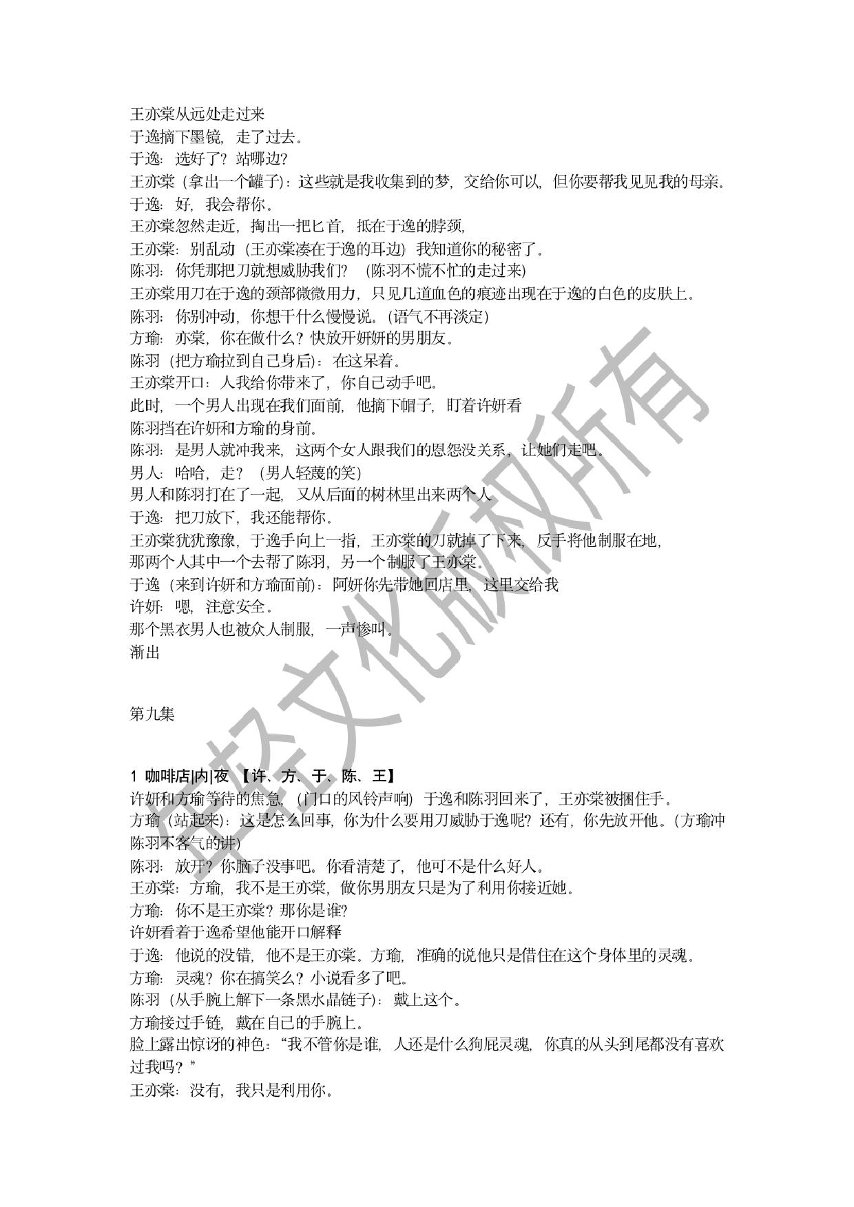 | 【片名】《梦境事务所》 【频道】男频 【类型】悬疑 【集数】80 【完成程度】完本 【故事梗概】普通女大学生许妍机缘巧合之下进人市区的一家咖啡店,对店主于逸一见钟情,并且偶然进入了店内的秘密空间﹣﹣梦境事务所,因而对于逸本人的真实身份产生了好奇心,在许妍经历的后续的校园离奇事件中,现场都有于逸的身影,两人多次相遇,逐渐走近,原来最开始的那场偶遇竟然是由于逸亲自安排好的,咖啡店主于逸的真实身份是负责运营收集梦境的梦境事务所,他拥有控制梦和感知未来的能力,并且通过梦境来完成他人的请求,出于对许妍去世的亲人做出的承诺,选择在暗处保护许妍的安全,但是在相处之中发现了自己对其产生的复杂情感,更是通过梦境得知了许妍的真正身份,其实是自己之后的梦境事务所继任者,而与此同时于逸的掌管和读取梦境的能力也因为许妍的出现在逐渐变弱 面对这种情况,于逸不得不让许妍提前参与到梦境事务所的管理之中,起初许妍并不理解他的工作,但是经历见证到于逸是如何帮助他人记录梦境,如何利用梦境惩罚坏人之后,她开始理解这份工作存在的必要性,同时她的预知梦能力开始觉醒,顺利的话,不久之后,两人就会完成身份的交换,正当事情朝着预定的方向继续向下发展之时,许妍的好友方瑜,以及她的男友王亦棠与突然出现的食梦者打破了于逸的安排,他们共同的朋友也被卷进这场与对立势力的纠纷中,食梦者窃取人类的梦境的行为破坏了秩序,使人类为了持续做美梦而沉溺在其中无法面对现实,众人为了继续维护梦境世界里的秩序,决定先共同对付食梦者所在的集团,在这期间,方瑜与于逸的朋友陈羽暗生情愫,陈羽在她的帮助下破除了困扰自身的情感困惑,放下了对于过去的执念,另一边王亦棠被食梦者利用离开之后,新的对立势力派出食梦者任承允化身男大学生接触许妍,借机挑拨于逸和许妍的关系和利用许妍逐渐出现的预知梦能力,但是在这个过程中,任承允被许妍的真诚打动,动了恻隐之心,他决定通过自己的办法来保护许妍,化解她即将面临的危险,而此时于逸和许妍两个人的的关系因为于逸能力变弱再次出现了不可避免的误会,但是许妍在得知真相和自己身上的使命之后,主动参与了于逸的工作,作为他的助手,由最开始的不解到理解这项工作的重要意义,两个人一起解决了几起的工作,包括替被霸凌十三岁少年完成了心愿,让霸凌者在噩梦的困扰下主动去坦白了自己的错误,接受了应该承受的责罚,帮助丢失小孩的父母找回久远的记忆,最终找回了小孩子等事件.许妍也在于逸的帮助下逐渐成长为了一个可以独立承担起运营事务所的合格人选 最终对决来临,于逸等人联合其他城市的朋友一起战胜了食梦者,维护了梦境世界的秩序,战斗结束之后,方瑜和陈羽两人也迎来了毕业典礼,两个人心意相通决定走入婚姻的殿堂,他们很快有了一个可爱的宝宝,而于逸的能力最终消失,他自己变成了普通人,许妍决定和他一起度过属于两个人最后的时光,生命的倒计时开始,于逸将事务所顺利交给了许妍打理,许妍获得了于逸之前的能力,而同时她的生命按下了暂停键,正如许妍很久之前做过的梦境一样,于逸作为助手帮助她整理资料管理着梦境事务所,但很快于逸便因病离开了众人,许妍独自经营着事务所,等待着于逸的再次出现,等到20年后,一个长相酷似于逸的年轻人再次进入咖啡店,此人正是方瑜和陈羽小孩的同学,于逸没有失去记忆,他们认出来彼此,而与此同时许妍也等到了自己的继任者出现,终于两人的生命开始同时变化,两人终于等到了在一起的机会,于是在方瑜和陈羽的见证下结为夫妻从而获得了真正的幸福,梦境事务所没有关闭,而是迎接来了它的下一任接管者,此人像极了从前的王亦棠,梦境事务所继续经营着,在一代代继任者的运营下,梦境世界的秩序不再被破坏,运用它的力量给失意的人们带去希望,给违法犯罪者带去恐慌,帮助现实世界里的执法者共同守护城市的安宁。 【价格】8000元 【联络】V:pushimedia |