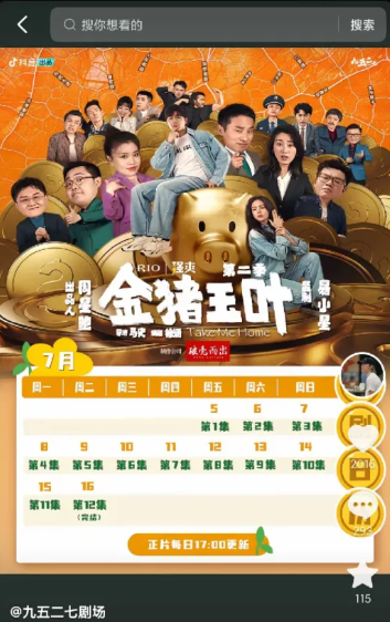 周星驰出品的《金猪玉叶》第二季已上线,由第一季的原班人马打造:出品人周星驰,导演马史,编剧徐涵,监制易小星,制作公司是破壳而出。共12集,日更。该剧有赞助商:RIO 强爽 |